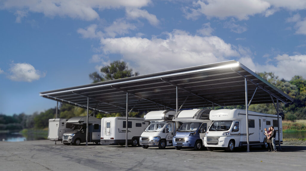 Solar carports come in many configurations — from small residential solutions to large industrial systems.